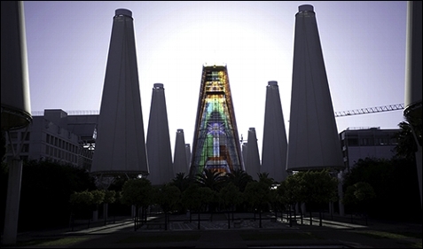 El consejero José Carlos Gómez Villamandos firma con el director Ángel Ibarra el convenio que materializa la subvención destinada a financiar la cimentación y la edificación de las estructuras primarias.
